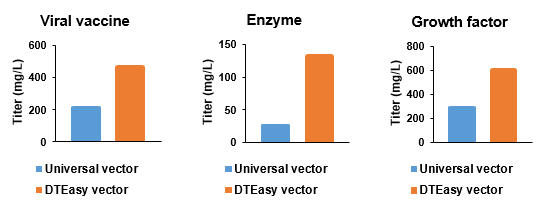 漢騰生物開發(fā)了針對難表達蛋白(Difficult to express protein)的DTEasy工具箱,通過分子改良、專有載體、優(yōu)選宿主細胞系以及定制化工藝,全面提升難表達蛋白產量。