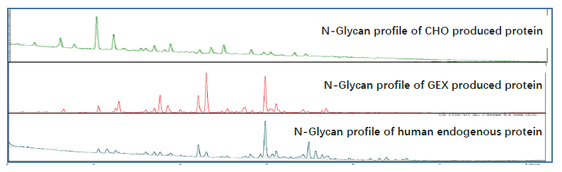 漢騰獨家GlycoExpress人類髓系來源細胞系,專門用于表達困難的糖蛋白。在GPCR類、血液因子、復雜多聚物等重組蛋白表達中,具有更高的產量和與人類天然蛋白更相似的糖譜。