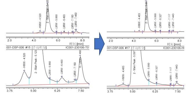 下游工藝開發(fā):雙抗由于其結(jié)構(gòu)復(fù)雜性以及多種不同的構(gòu)型,可能會產(chǎn)生不同種類的錯配構(gòu)型。漢騰生物針對不同類型的雙抗也開發(fā)出相應(yīng)的技術(shù)路線,對高分子量聚集以及非目標構(gòu)型的去除具有良好的效果,最終達到98%以上的純度。