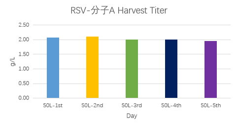 RSV分子A的5個批次的表達(dá)量均在2g/L左右,RSV分子B的表達(dá)量最高可達(dá)3.2g/L左右。