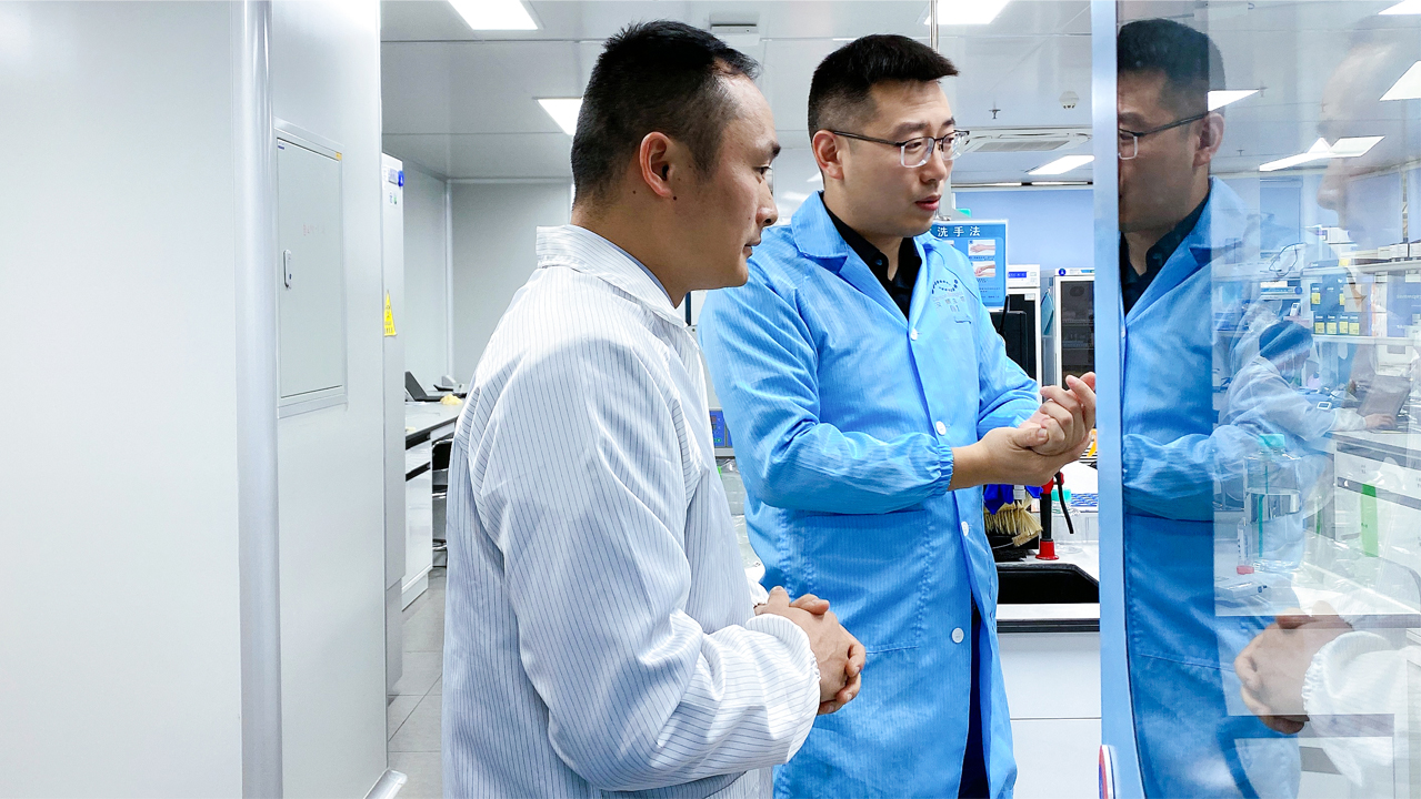 隨后,沈瀟博士與張光南教授一行參觀了廣州伯利恒研發(fā)基地,詳細講解了CMC開發(fā)的各類平臺。其中,沈瀟博士特別提到IgM平臺(IgMaxTM表達載體平臺和IgMasterTM工藝平臺),我們很早就布局搭建了這個平臺,去年遇到客戶需求,我們便能迅速反應,并將產(chǎn)量做到了業(yè)界最高——8g/L(大部分文獻中IgM產(chǎn)量是低于1g/L)。張光南教授對漢騰生物的創(chuàng)新發(fā)展表示肯定,并對沈瀟博士在粵港澳大灣區(qū)生物醫(yī)藥領(lǐng)域所作的努力表示高度的贊揚。